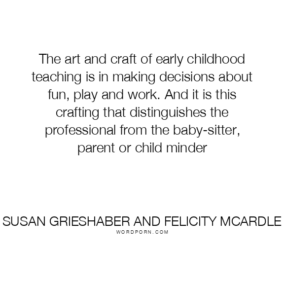 The art and craft of early childhood teaching is in making decisions about fun, play and work. And it is this crafting that distinguishes the professional from the baby-sitter, parent or child minder