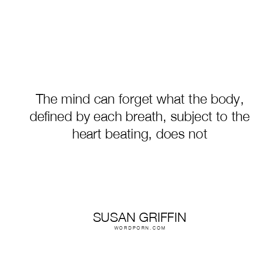 The mind can forget what the body, defined by each breath, subject to the heart beating, does not