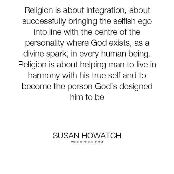 Religion is about integration, about successfully bringing the selfish ego into line with the centre of the personality where God exists, as a divine spark, in every human being. Religion is about helping man to live in harmony with his true self and to become the person God’s designed him to be