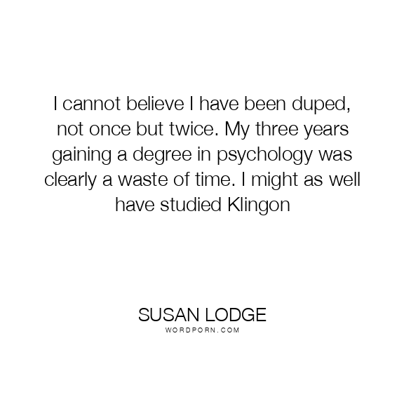I cannot believe I have been duped, not once but twice. My three years gaining a degree in psychology was clearly a waste of time. I might as well have studied Klingon