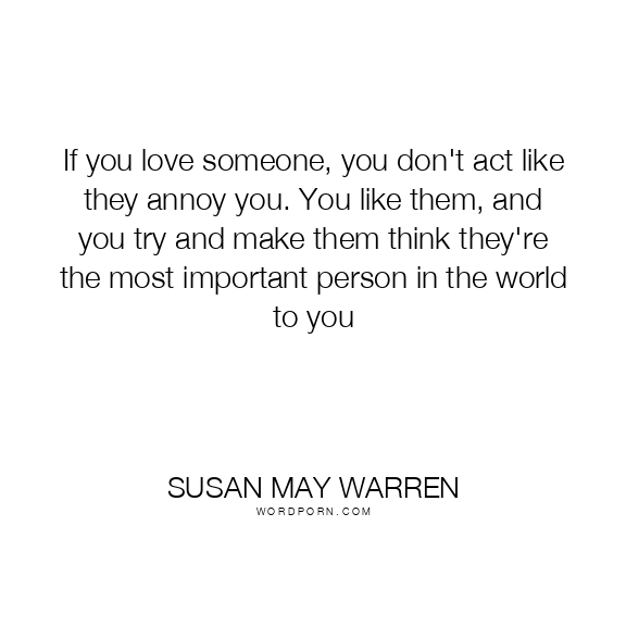 If you love someone, you don't act like they annoy you. You like them, and you try and make them think they're the most important person in the world to you