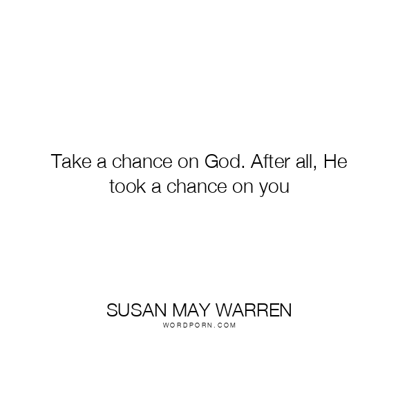 Take a chance on God. After all, He took a chance on you