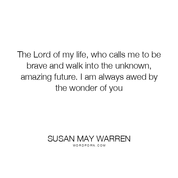 The Lord of my life, who calls me to be brave and walk into the unknown, amazing future. I am always awed by the wonder of you