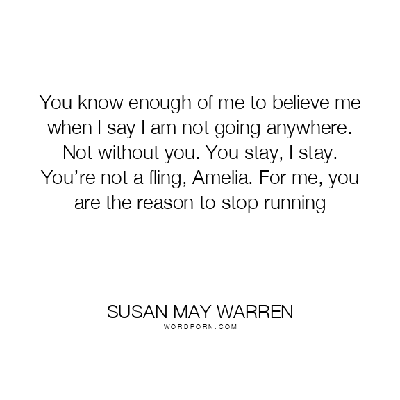 You know enough of me to believe me when I say I am not going anywhere. Not without you. You stay, I stay. You’re not a fling, Amelia. For me, you are the reason to stop running