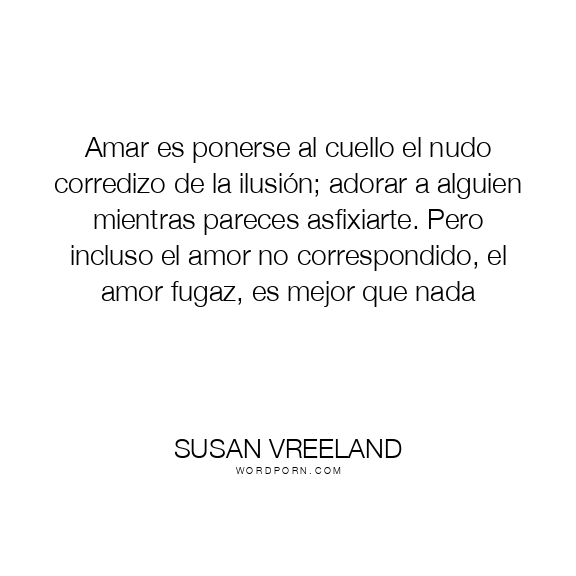 Amar es ponerse al cuello el nudo corredizo de la ilusión; adorar a alguien mientras pareces asfixiarte. Pero incluso el amor no correspondido, el amor fugaz, es mejor que nada