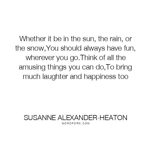 Whether it be in the sun, the rain, or the snow,You should always have fun, wherever you go.Think of all the amusing things you can do,To bring much laughter and happiness too