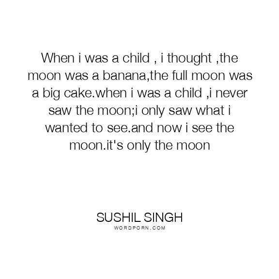 When i was a child , i thought ,the moon was a banana,the full moon was a big cake.when i was a child ,i never saw the moon;i only saw what i wanted to see.and now i see the moon.it's only the moon