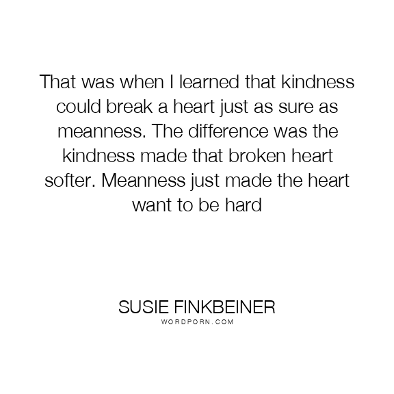 That was when I learned that kindness could break a heart just as sure as meanness. The difference was the kindness made that broken heart softer. Meanness just made the heart want to be hard
