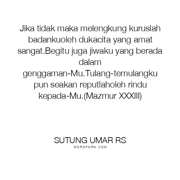 Jika tidak maka melengkung kuruslah badankuoleh dukacita yang amat sangat.Begitu juga jiwaku yang berada dalam genggaman-Mu.Tulang-temulangku pun seakan reputlaholeh rindu kepada-Mu.(Mazmur XXXIII)