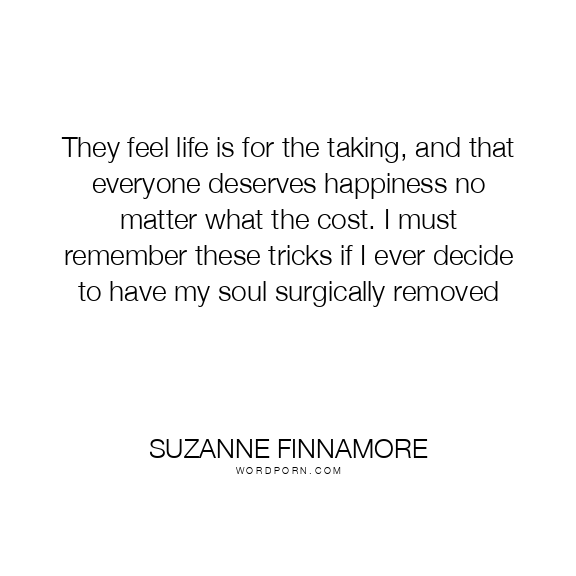 They feel life is for the taking, and that everyone deserves happiness no matter what the cost. I must remember these tricks if I ever decide to have my soul surgically removed