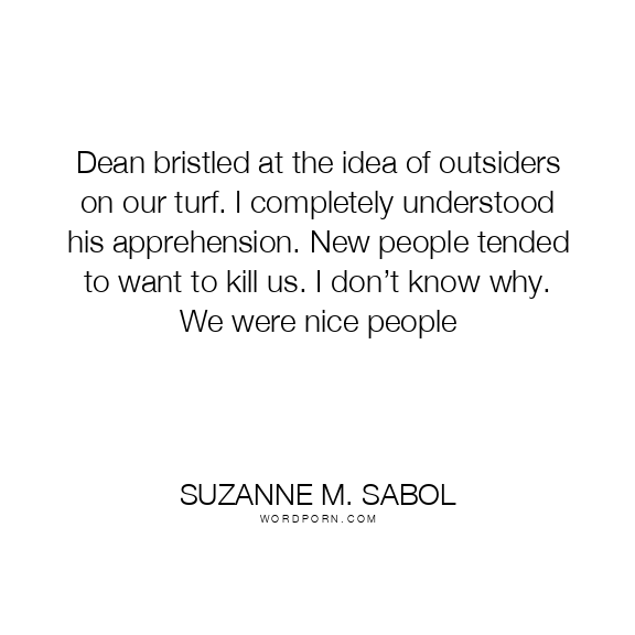 Dean bristled at the idea of outsiders on our turf. I completely understood his apprehension. New people tended to want to kill us. I don’t know why. We were nice people