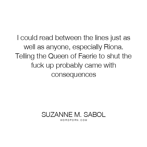 I could read between the lines just as well as anyone, especially Riona. Telling the Queen of Faerie to shut the fuck up probably came with consequences