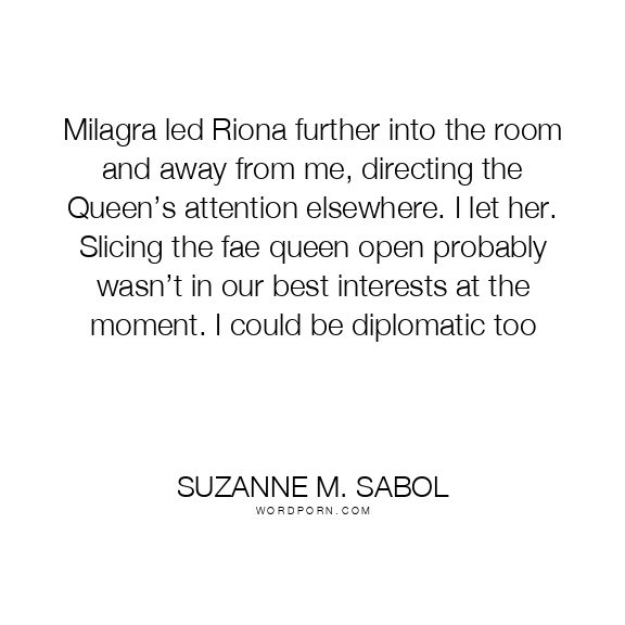 Milagra led Riona further into the room and away from me, directing the Queen’s attention elsewhere. I let her. Slicing the fae queen open probably wasn’t in our best interests at the moment. I could be diplomatic too