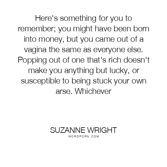 Here's something for you to remember; you might have been born into money, but you came out of a vagina the same as everyone else. Popping out of one that's rich doesn't make you anything but lucky, or susceptible to being stuck your own arse. Whichever