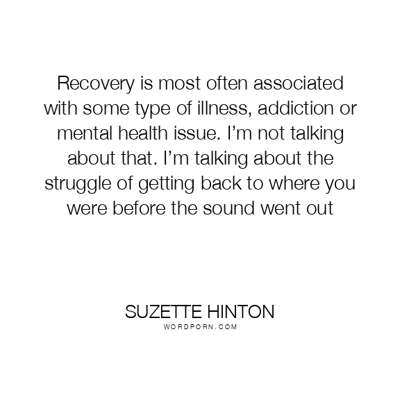 Recovery is most often associated with some type of illness, addiction or mental health issue. I’m not talking about that. I’m talking about the struggle of getting back to where you were before the sound went out