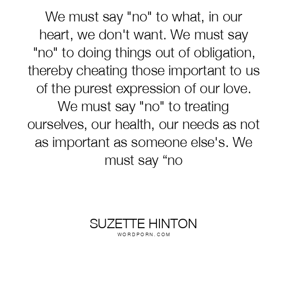 We must say "no" to what, in our heart, we don't want. We must say "no" to doing things out of obligation, thereby cheating those important to us of the purest expression of our love. We must say "no" to treating ourselves, our health, our needs as not as important as someone else's. We must say “no