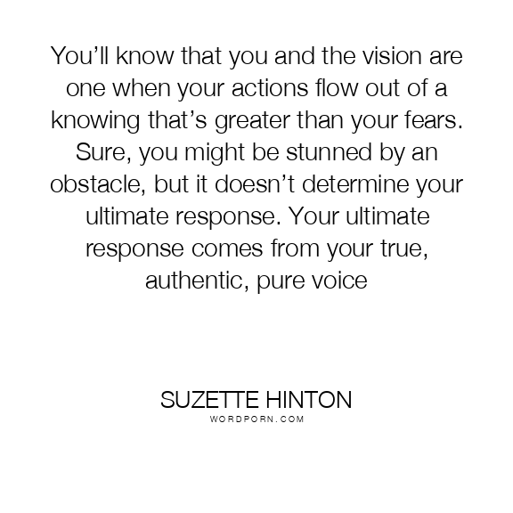 You’ll know that you and the vision are one when your actions flow out of a knowing that’s greater than your fears. Sure, you might be stunned by an obstacle, but it doesn’t determine your ultimate response. Your ultimate response comes from your true, authentic, pure voice