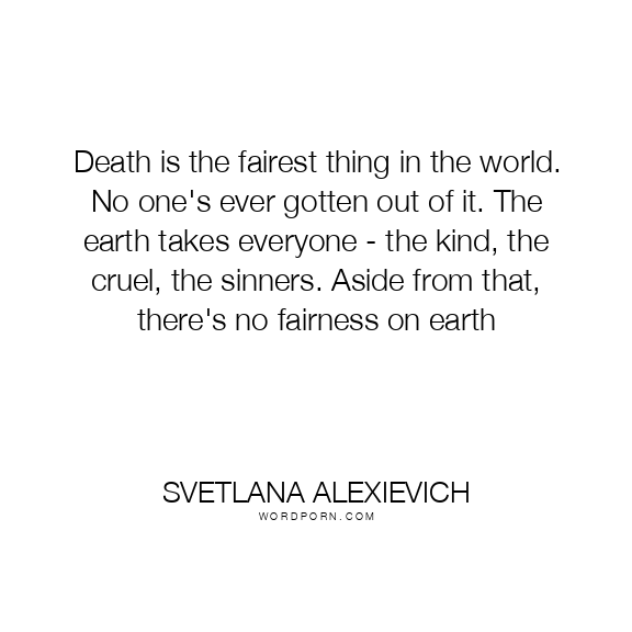Death is the fairest thing in the world. No one's ever gotten out of it. The earth takes everyone - the kind, the cruel, the sinners. Aside from that, there's no fairness on earth