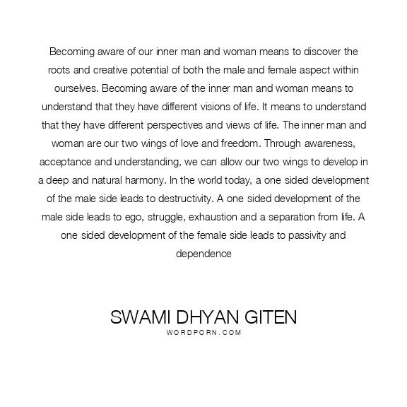 Becoming aware of our inner man and woman means to discover the roots and creative potential of both the male and female aspect within ourselves. Becoming aware of the inner man and woman means to understand that they have different visions of life. It means to understand that they have different perspectives and views of life. The inner man and woman are our two wings of love and freedom. Through awareness, acceptance and understanding, we can allow our two wings to develop in a deep and natural harmony. In the world today, a one-sided development of the male side leads to destructivity. A one-sided development of the male side leads to ego, struggle, exhaustion and a separation from life. A one-sided development of the female side leads to passivity and dependence
