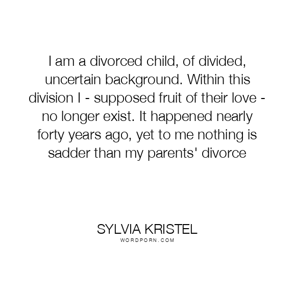 I am a divorced child, of divided, uncertain background. Within this division I - supposed fruit of their love - no longer exist. It happened nearly forty years ago, yet to me nothing is sadder than my parents' divorce