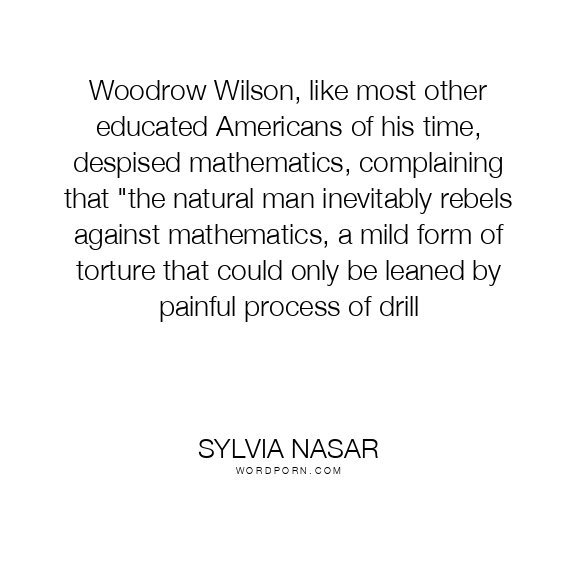 Woodrow Wilson, like most other educated Americans of his time, despised mathematics, complaining that "the natural man inevitably rebels against mathematics, a mild form of torture that could only be leaned by painful process of drill