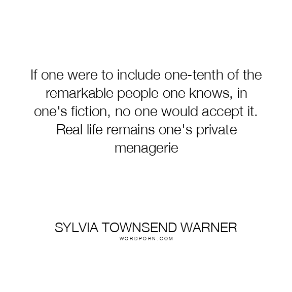 If one were to include one-tenth of the remarkable people one knows, in one's fiction, no one would accept it. Real life remains one's private menagerie