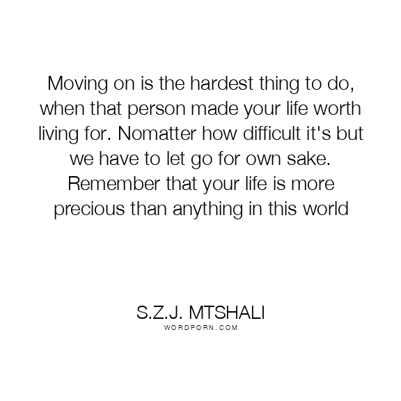 Moving on is the hardest thing to do, when that person made your life worth living for. Nomatter how difficult it's but we have to let go for own sake. Remember that your life is more precious than anything in this world