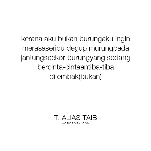 kerana aku bukan burungaku ingin merasaseribu degup murungpada jantungseekor burungyang sedang bercinta-cintaantiba-tiba ditembak(bukan)