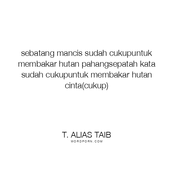 sebatang mancis sudah cukupuntuk membakar hutan pahangsepatah kata sudah cukupuntuk membakar hutan cinta(cukup)