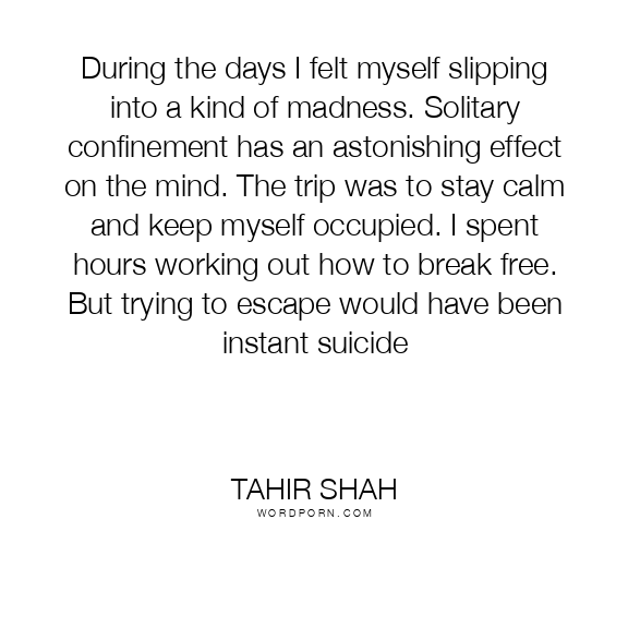 During the days I felt myself slipping into a kind of madness. Solitary confinement has an astonishing effect on the mind. The trip was to stay calm and keep myself occupied. I spent hours working out how to break free. But trying to escape would have been instant suicide