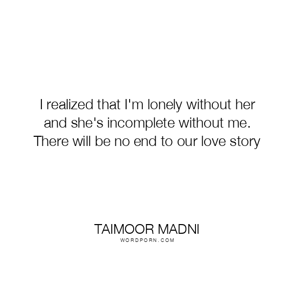 I realized that I'm lonely without her and she's incomplete without me. There will be no end to our love story