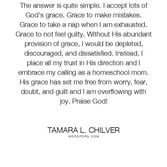 How do I find joy in my homeschool journey? The answer is quite simple. I accept lots of God's grace. Grace to make mistakes. Grace to take a nap when I am exhausted. Grace to not feel guilty. Without His abundant provision of grace, I would be depleted, discouraged, and dissatisfied. Instead, I place all my trust in His direction and I embrace my calling as a homeschool mom. His grace has set me free from worry, fear, doubt, and guilt and I am overflowing with joy. Praise God!