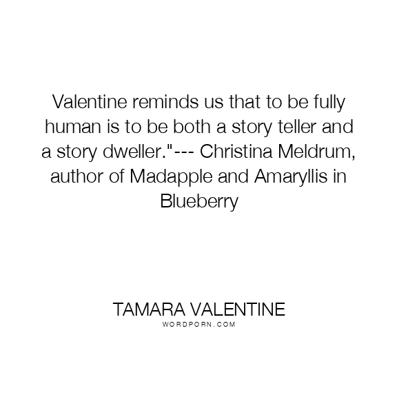 Valentine reminds us that to be fully human is to be both a story teller and a story dweller."--- Christina Meldrum, author of Madapple and Amaryllis in Blueberry