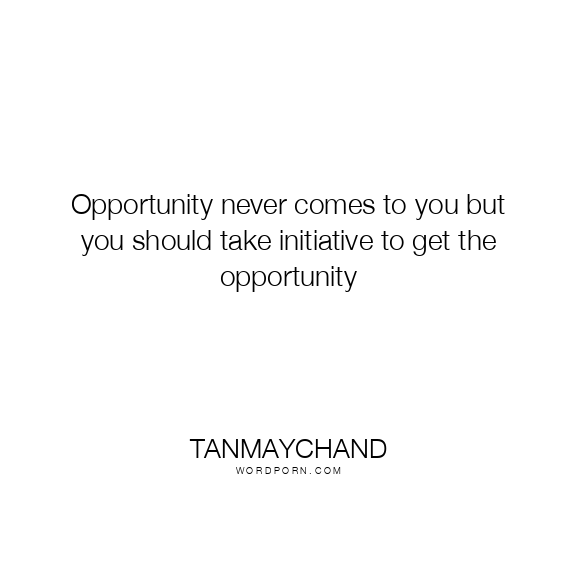 Opportunity never comes to you but you should take initiative to get the opportunity