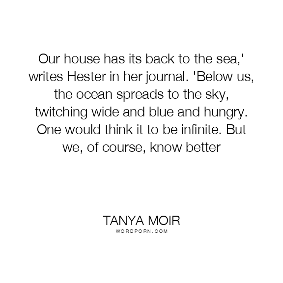 Our house has its back to the sea,' writes Hester in her journal. 'Below us, the ocean spreads to the sky, twitching wide and blue and hungry. One would think it to be infinite. But we, of course, know better