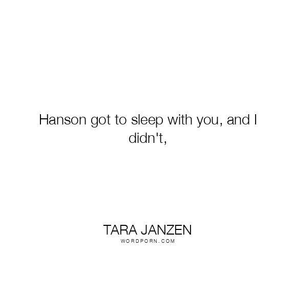 Hanson got to sleep with you, and I didn't,