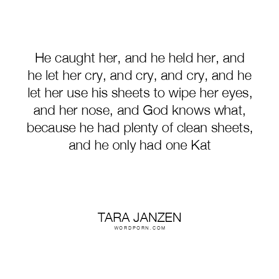 He caught her, and he held her, and he let her cry, and cry, and cry, and he let her use his sheets to wipe her eyes, and her nose, and God knows what, because he had plenty of clean sheets, and he only had one Kat
