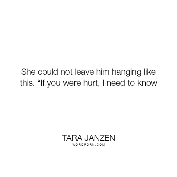 She could not leave him hanging like this. “If you were hurt, I need to know
