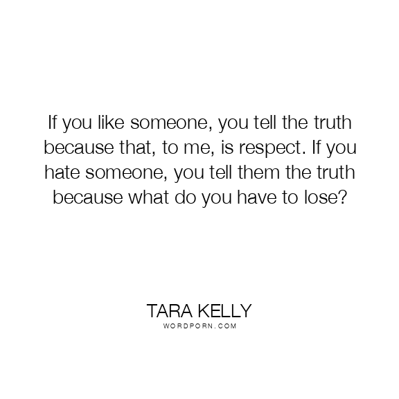 If you like someone, you tell the truth because that, to me, is respect. If you hate someone, you tell them the truth because what do you have to lose?