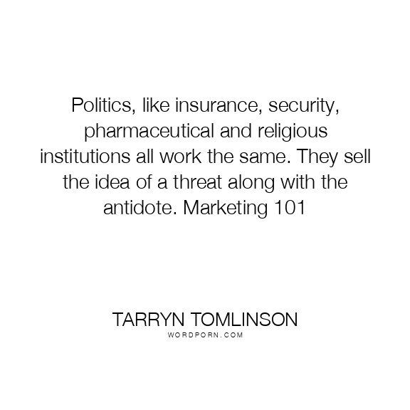 Politics, like insurance, security, pharmaceutical and religious institutions all work the same. They sell the idea of a threat along with the antidote. Marketing 101