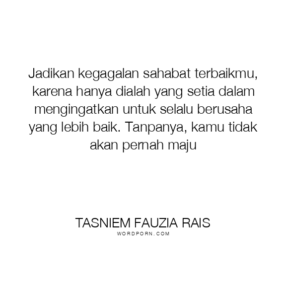 Jadikan kegagalan sahabat terbaikmu, karena hanya dialah yang setia dalam mengingatkan untuk selalu berusaha yang lebih baik. Tanpanya, kamu tidak akan pernah maju