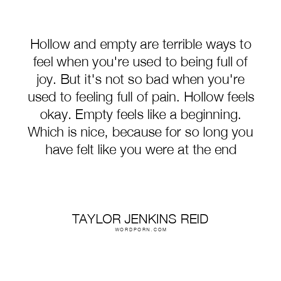 Hollow and empty are terrible ways to feel when you're used to being full of joy. But it's not so bad when you're used to feeling full of pain. Hollow feels okay. Empty feels like a beginning. Which is nice, because for so long you have felt like you were at the end