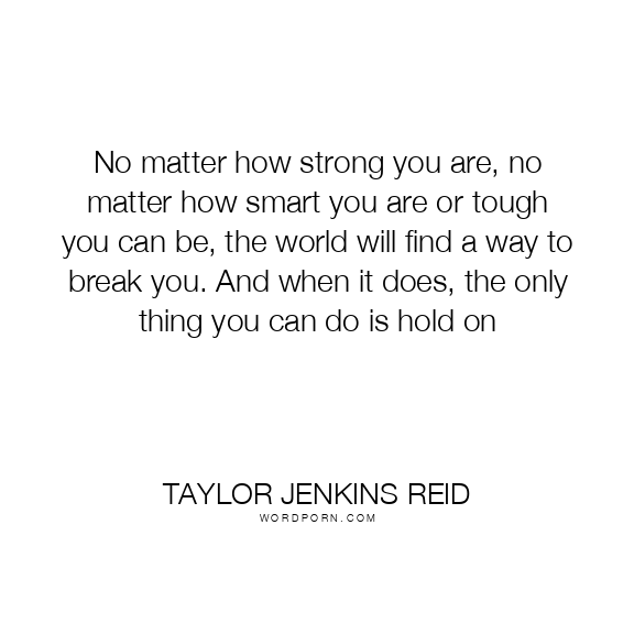 No matter how strong you are, no matter how smart you are or tough you can be, the world will find a way to break you. And when it does, the only thing you can do is hold on