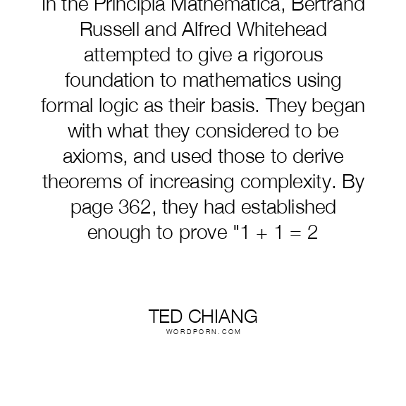 In the Principia Mathematica, Bertrand Russell and Alfred Whitehead attempted to give a rigorous foundation to mathematics using formal logic as their basis. They began with what they considered to be axioms, and used those to derive theorems of increasing complexity. By page 362, they had established enough to prove "1 + 1 = 2