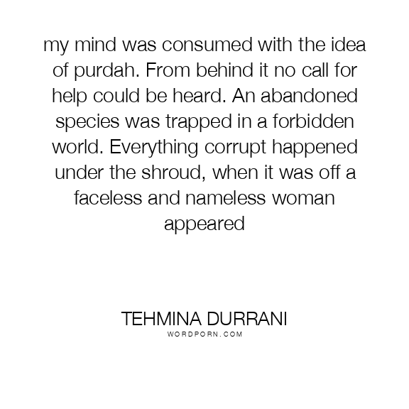 my mind was consumed with the idea of purdah. From behind it no call for help could be heard. An abandoned species was trapped in a forbidden world. Everything corrupt happened under the shroud, when it was off a faceless and nameless woman appeared