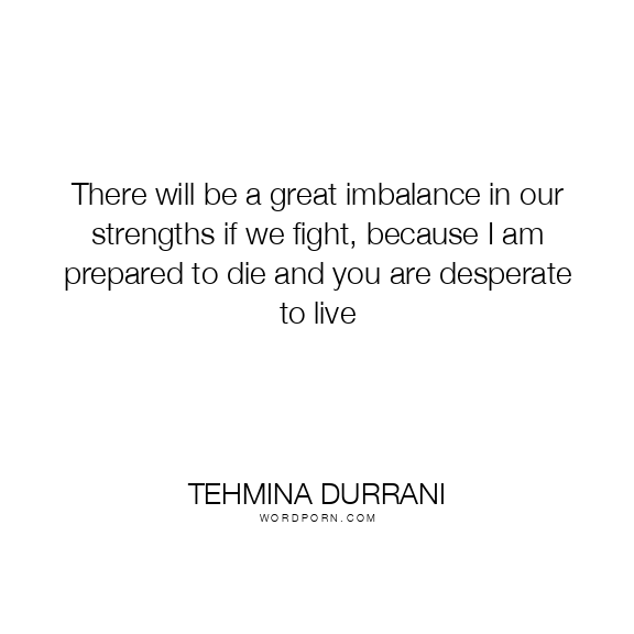 There will be a great imbalance in our strengths if we fight, because I am prepared to die and you are desperate to live