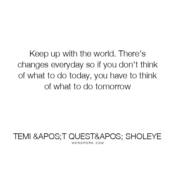 Keep up with the world. There's changes everyday so if you don't think of what to do today, you have to think of what to do tomorrow