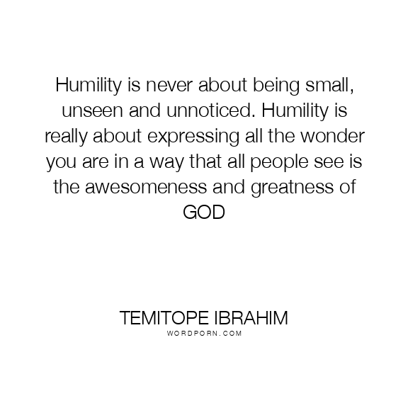 Humility is never about being small, unseen and unnoticed. Humility is really about expressing all the wonder you are in a way that all people see is the awesomeness and greatness of GOD