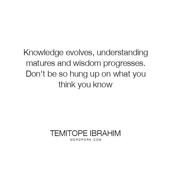 Knowledge evolves, understanding matures and wisdom progresses. Don't be so hung up on what you think you know