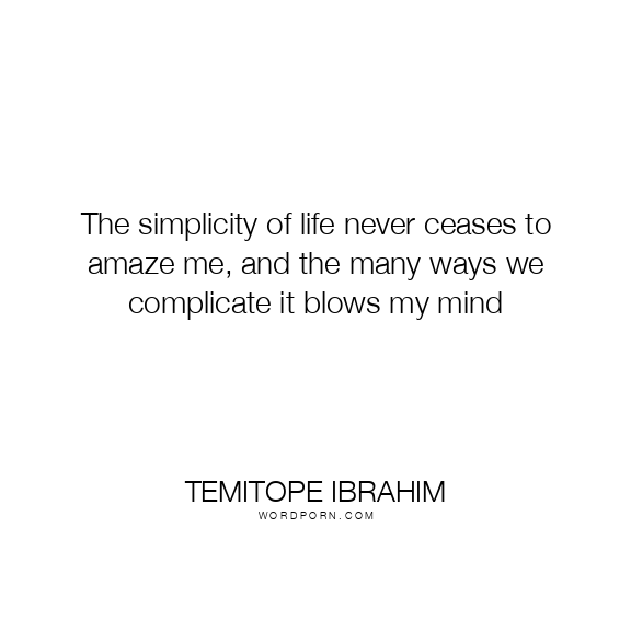 The simplicity of life never ceases to amaze me, and the many ways we complicate it blows my mind
